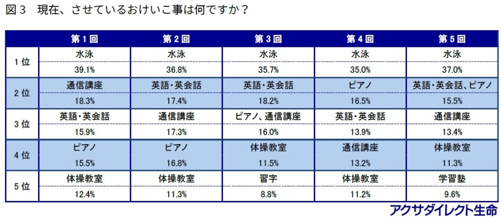 ■人気のおけいこ事は今年も「水泳」がダントツ