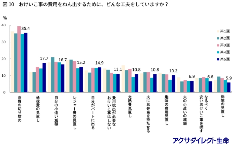 おけいこ事の費用を捻出するための工夫は圧倒的に「食費の切り詰め」で、食料品などの値上げが続くなか、身近にできる節約を確実に行い、おけいこ事を優先して家計をやりくりする母親像が見えてきました。